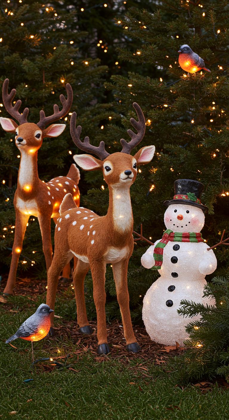 Add a fun twist to your yard with whimsical animal figurines. Think snowmen, reindeer, or even quirky birds. You can purchase them or create your own using materials like clay or painted wood. If you’re crafty, consider making them using plastic bottles or old toys. Place them throughout your yard among the greenery. They’ll provide an interactive charm that brings joy to both kids and adults alike!