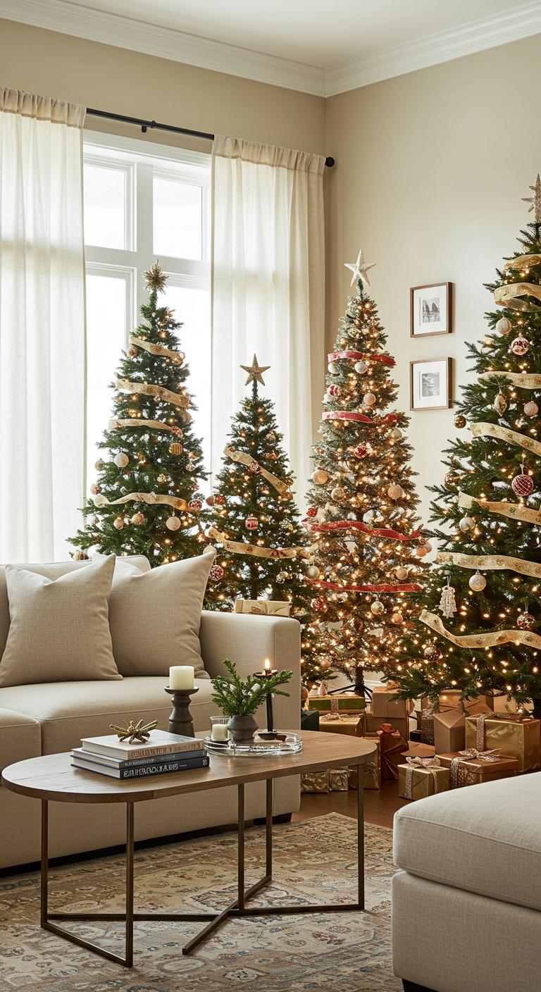 Consider decorating multiple smaller trees throughout your home, each with a unique theme. This creative approach extends your holiday spirit beyond one central tree. For instance, use a neutral palette for the main tree while experimenting with soft colors on the others in different rooms. You can use family memories, travel themes, or childhood hobbies as inspiration. Choose affordable decorations at local stores to keep costs manageable while crafting unique, festive displays.