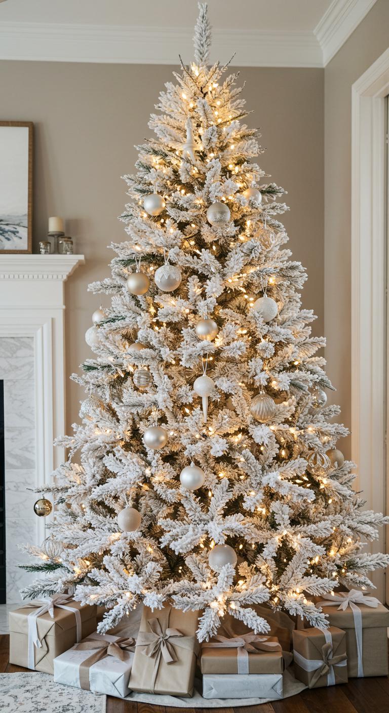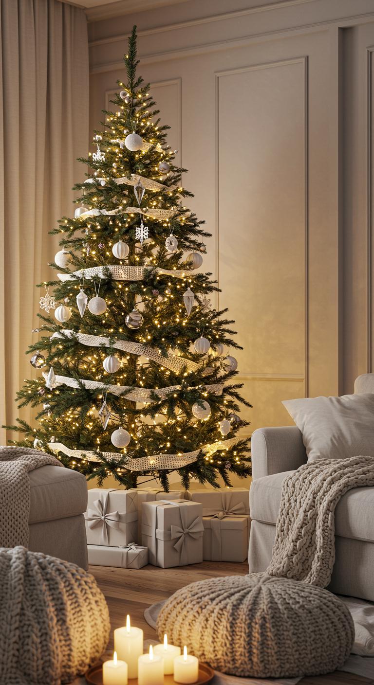 Flocked trees create a winter wonderland feel, reminding us of snowy days. The soft white appearance sets a perfect stage for larger ornaments or handmade decorations. Style it with clear or frosted lights to intensify the snowy effect. If you’re on a budget, try flocking your existing tree using white spray or cotton batting for a DIY look. It’s a simple way to add a modern touch while maintaining your neutral elegance.
