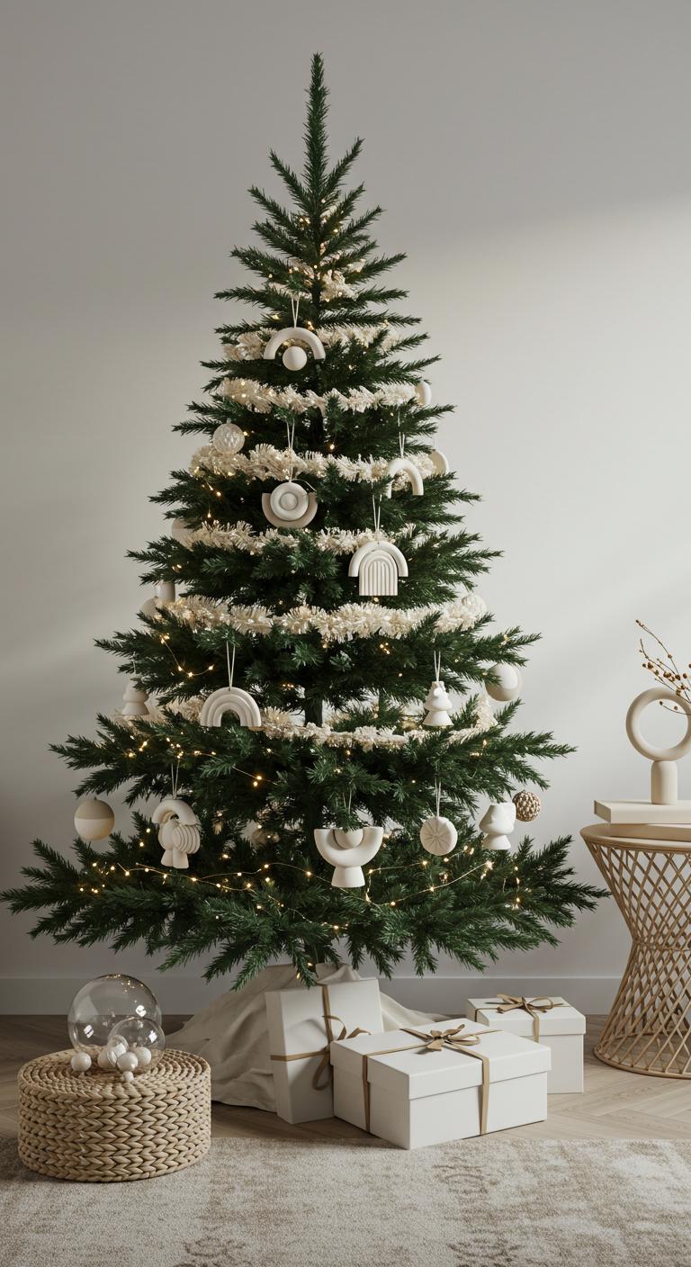 For a modern twist, consider using abstract or artistic ornaments that convey a sophisticated tone. Sleek lines and unique shapes in white or metallics will create a striking design. Budget alternatives might include crafting your own ornaments from lightweight materials or purchasing simple art pieces that can hang among the branches. This approach allows you to express artistic flair while maintaining a neutral, modern aesthetic that catches the eye.