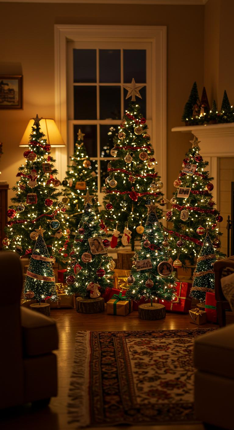 Create storytelling trees that celebrate your family’s memories. Each small tree can reflect a different theme, such as travel, hobbies, or shared experiences. Use personal photos, mementos, or ornaments that represent these stories. Change your theme year after year for a tradition that evolves with your family. This adds a personal touch to your home while showcasing unique histories in a festive format. It’s an affordable, heartfelt way to celebrate every year.