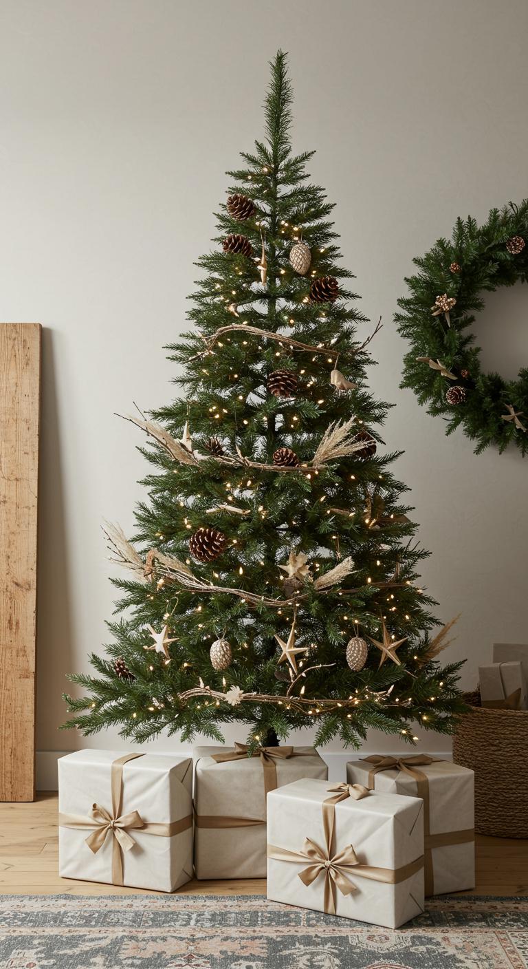 Integrating natural elements into your tree can evoke a cozy, woodland feel. Use pinecones, twigs, and small branches to decorate. Dried flowers or sprigs of eucalyptus can be amazing additions too. For a DIY twist, gather these from your backyard or local park. Attach them to the tree using twine or floral wire. Adding some fresh greenery brings the outside in, creating a relaxing atmosphere in your home. Pair with fairy lights to enhance the connection to nature.