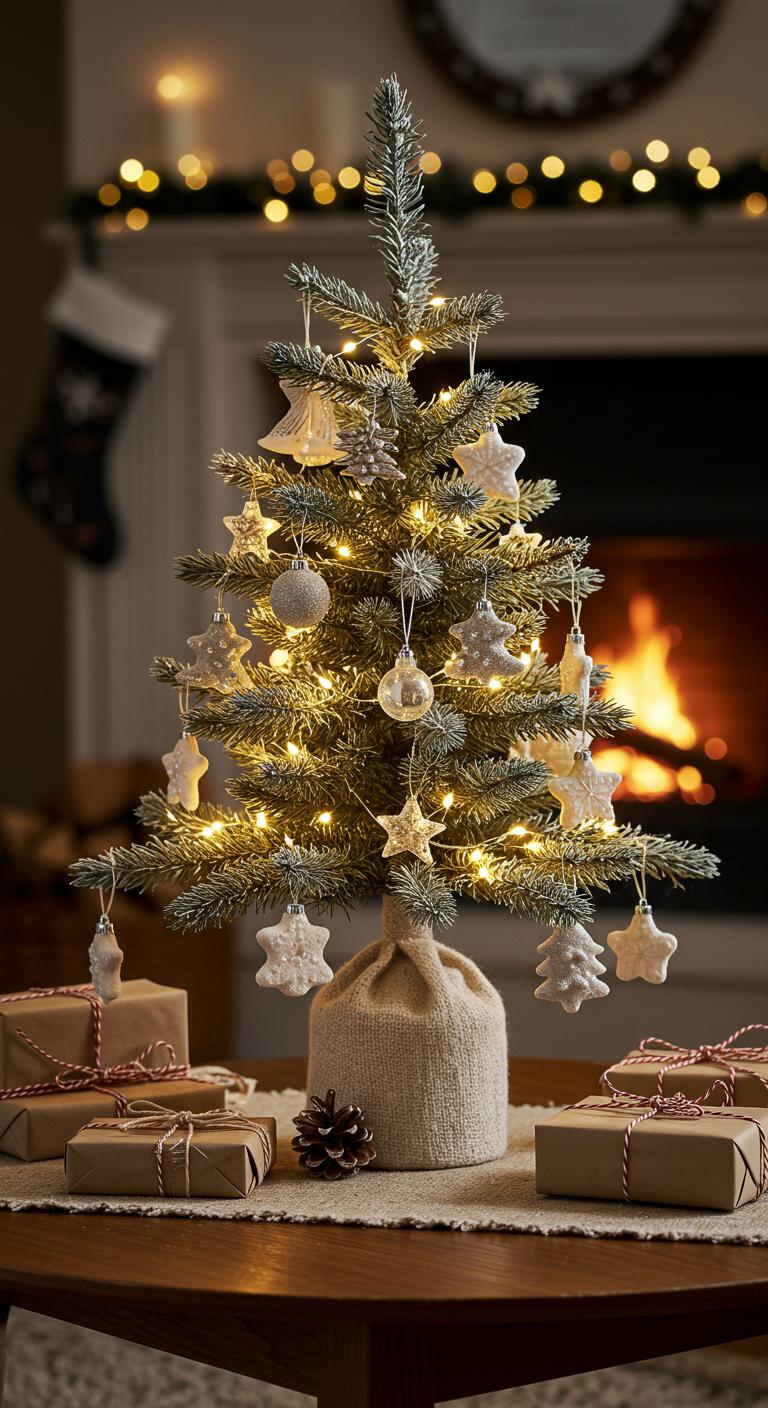 Not everyone has room for a grand tree, but tabletop trees can create just as much charm. A small neutral tree can sit on your dining table or mantel. Decorate it with tiny ornaments in whites and creams, and add lights for a sparkling touch. This offers a cozy feel without taking up space. Use items from your main tree, ensuring they match or blend into your overall theme. You can even create a themed table around it for a festive dinner.